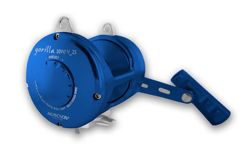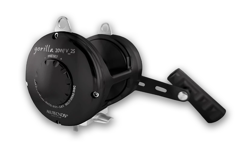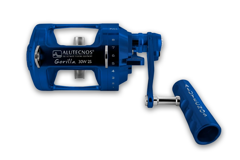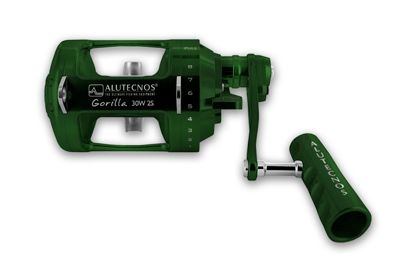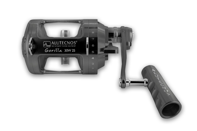 Alutecnos Albacore Gorilla series reels are small, powerful, elegant and immediately recognizable. These reels feature a multi-disc drag system that can be set at over 40 lbs on some models. Guaranteed free spool, and optimized gear ratios work perfectly with these reels to give them very high fish-fighting power. These reels were made for extreme deep-jigging purposes, but the smaller sizes can be used for inshore fishing as well.Â