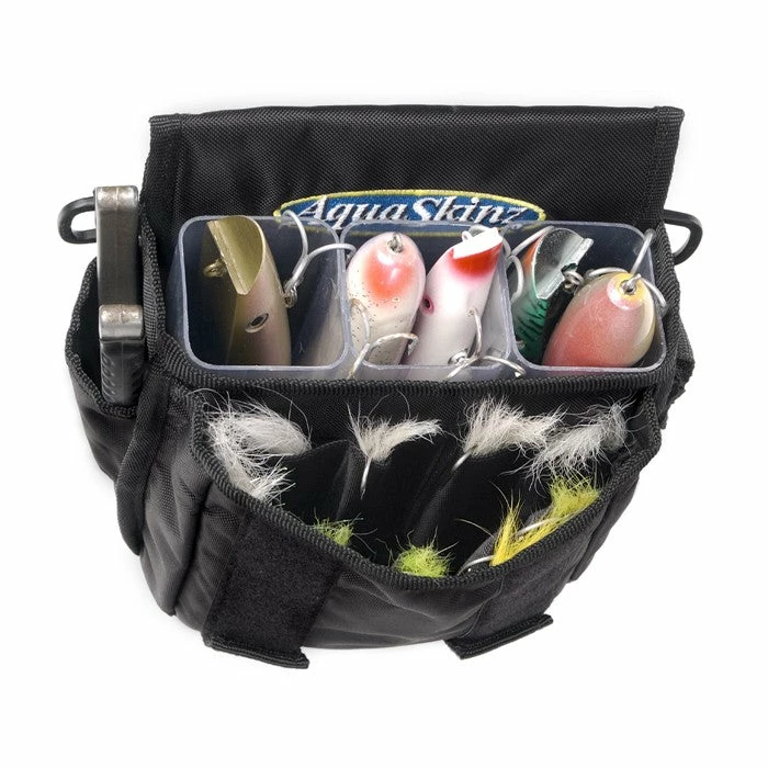 This bag is the one that you will not want to take off your belt! Made of our non-water absorbing rip stop material, this bag is small yet highly versatile. When less is more and traveling light is essential this is the bag you want. It will hold small to mid-size plugs as well as a host of bucktails jigs.