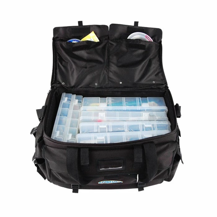 Retire the milk crates, storage bins and inferior storage bags. Carrying your supply of gear is no longer a dilemma because the answer is here! The Ultimate cargo bag is the one and only organizer bag you will need in your car, your boat or for your fishing excursion to far off destinations. Every square inch of usable space has been maximized for the Ultimate in organization, storage, transport and function. This bag fits our standard inserts to store your lures in as well as after market plastic boxes to carry all your tackle needs.