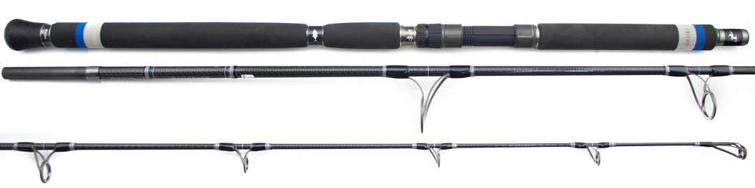 The Centaur Chiron Big Game Popping Rod is the perfect weapon for casting plugs to large, hard fighting pelagics like Tuna and Giant Trevally. These rods are built on blanks constructed from the highest grade Toray Carbon available. The use of Fuji Silicon Carbide guides assures low friction for casting, and the highest durability when used with braided line. We offer these with either Fuji K-Frame (KW) style, or Fuji “MN” style guides. The EVA foam grips are ergonomic, and when combined with a non-slip textured reel seat it makes for a rod that is not only powerful, but dextrous. All rods in this series are 2 piece, with a hidden joint at the foregrip. This truly is the ultimate rod for fishing poppers and stickbaits for big game species!