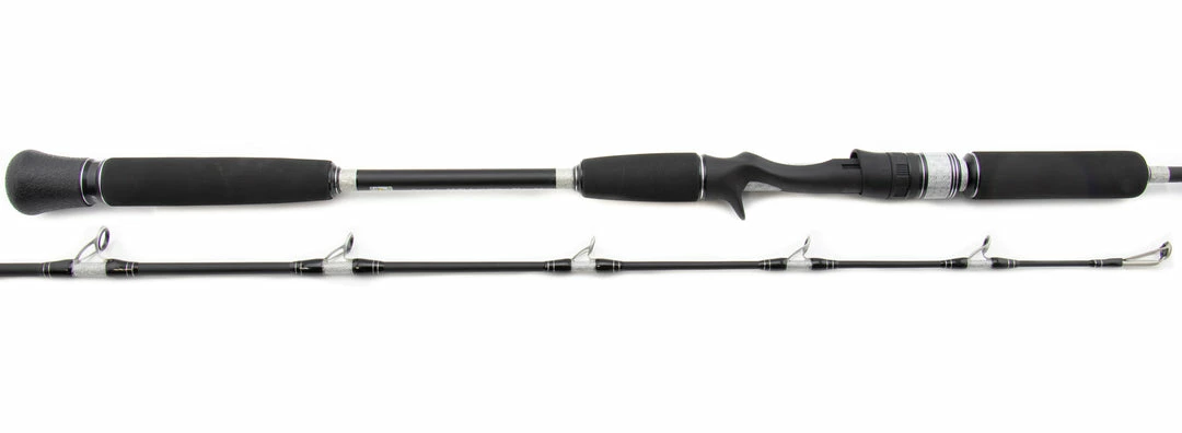 Centaur’s Jigging Rods are true “Japanese style” rods for handling hard fighting species. They are light in weight, and thin in profile, but make no mistake, Tuna, GT’s, Amberjacks, Yellowtail, and many other hard fighting species are all in the wheelhouse of these rods. Toray Carbon blanks make for an extremely strong, yet light weight blank. Combine that with the ergonomic EVA grip configuration, Fuji Alconite guides, and a textured reel seat and you have a serious fish fighting tool. The matte black finish on these rods and weave pattern underwraps make them appealing to the eye too. These are excellent jigging rods, at a very reasonable price.