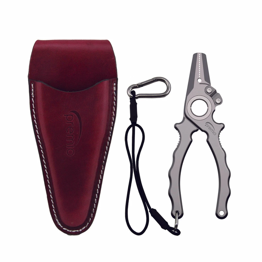 The absolute next level in fishing tools! We took a quantum leap forward and made a pair of extremely high-quality pliers that every angler would not only want but most importantly, be able to afford. Our premio level titanium pliers are just that, made of 100% machined titanium with a sleek matte finish and fitted with our exclusive Super Halo Hinge. These pliers also feature replaceable Cobalt-Titanium side cutters which are suitable for braided line, fluorocarbon, monofilament and even light wire. The entire line of premio pliers comes in very exclusive boxed packaging and they feature a 304 stainless-steel D ring, an elastic cord (non-coiled) lanyard and a belt-loop sheath made from the highest-grade leather. These pliers are extremely lightweight, so light than you will barely notice them on your hip for your lifetime of fishing excursions. All of the features above, backed with a full Lifetime Warranty makes these, “probably the best fishing pliers in the world.”