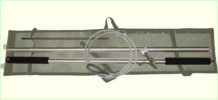 Solid Stainless Steel, two piece Harpoon with Foam Grips, is 9′ long and comes ready to fish with cable rigged dart and 19 inch Stainless Steel dart Shaft.
