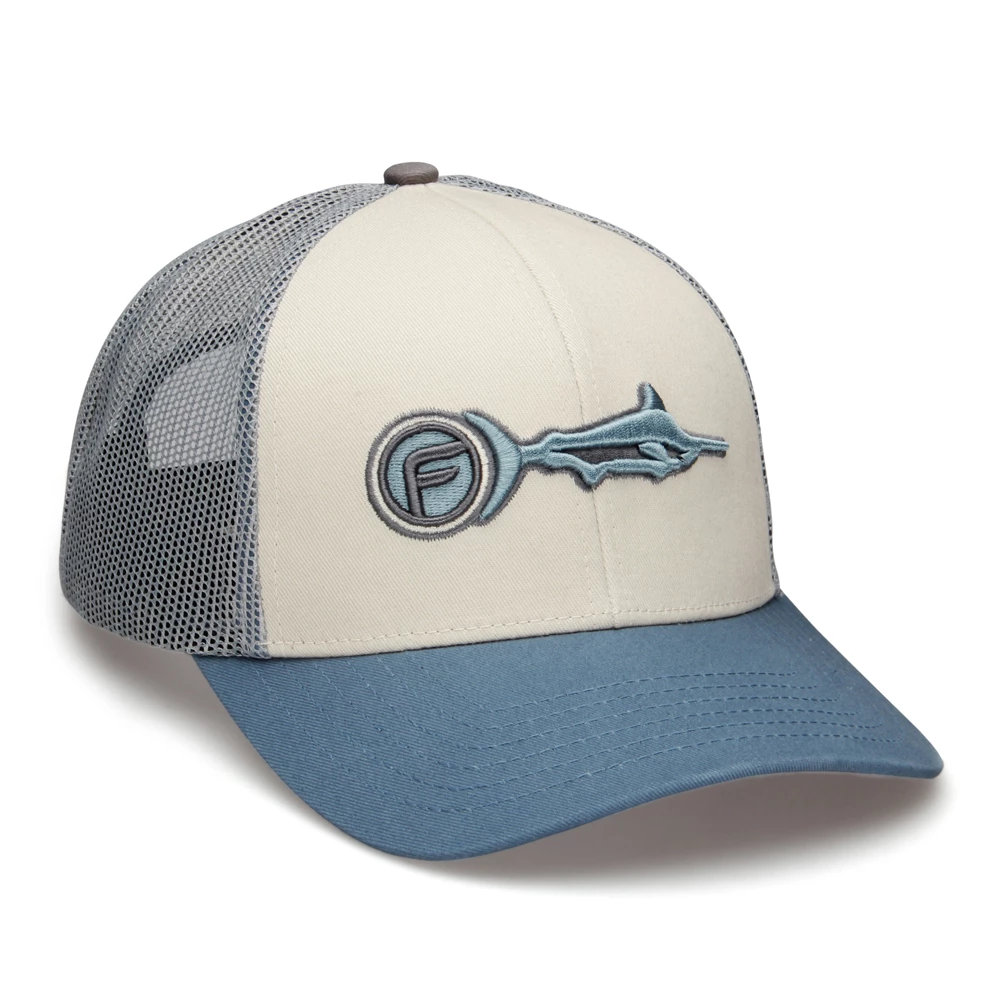 Mesh back trucker cap featuring a 3D Lure Eye “F” logo embroidery.