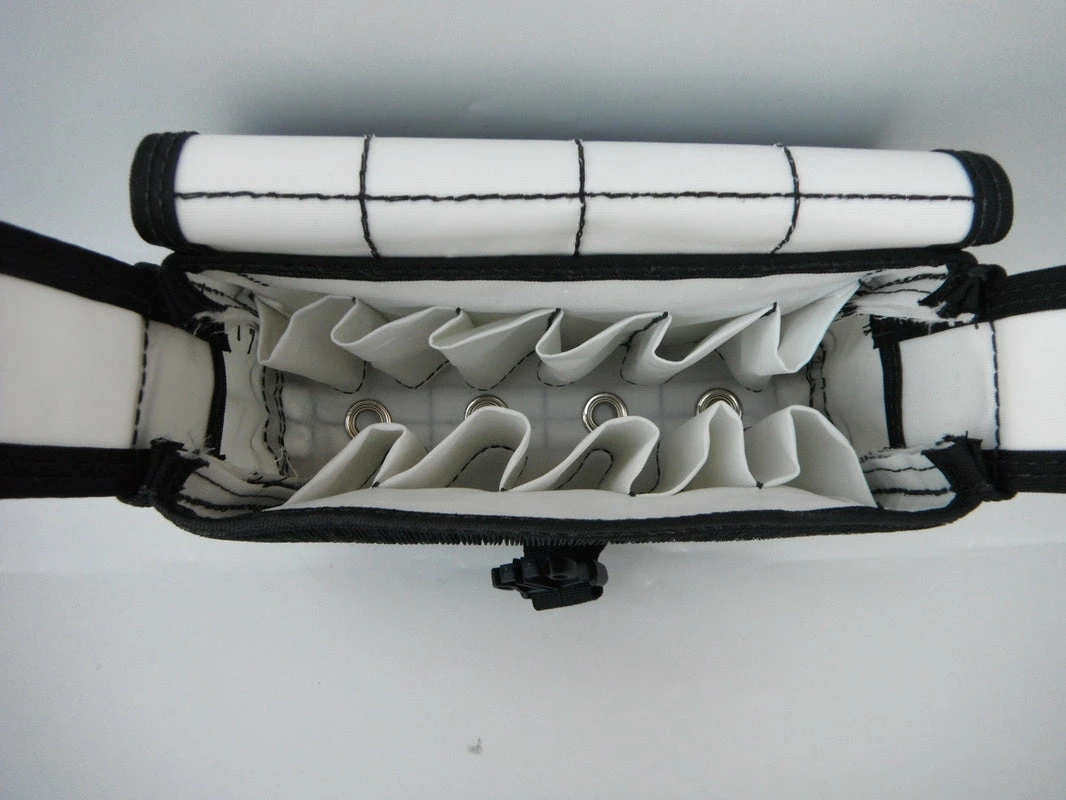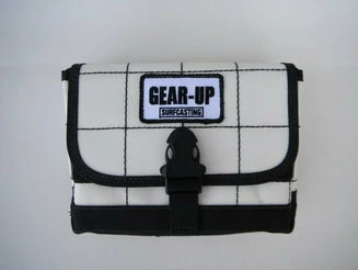 Gear-Up’s Bucktail Pouch is constructed just like the surf bags. The pouch has flaps the minute you open the bag to ensure that neither a Bucktail nor a tin falls out. The Bucktail pouch has a total of eleven slots, 5 in which can take up until 5 oz Bucktail and 6 that can take up until 2.5 oz Bucktail whether it’s a smiling bill, bullet head or spro shaped head. The pouch is built with 3 layers of Dacron Sailcloth and has four large grommets on the bottom for drainage.