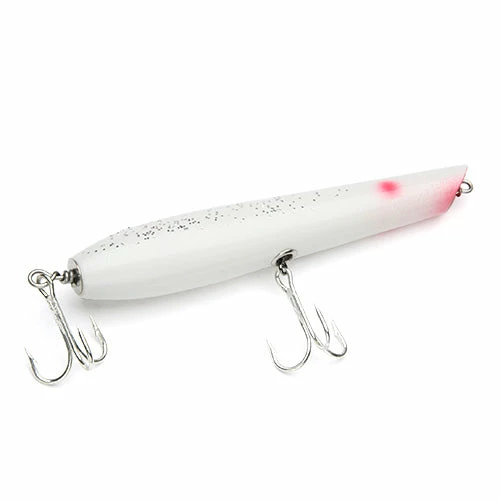 Sleek, tapered design with tail weight to get it out there. Gibbs pencil poppers are a staple in the world of surfcasting. When worked with a slow retrieve and rapid movement of the rod tip this lure makes a frantic surface disturbance that drives fish crazy.