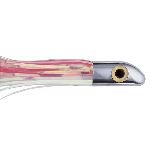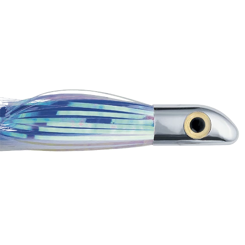 Just place it over a small to medium-sized Ballyhoo and watch it swim below the waters’ surface. The Hoo-La Hood® with chrome plating for long-distance flash, has been scientifically designed and weighted to allow fishermen to troll natural and artificial Ballyhoo at speeds up to 12 knots. Minimizes “washout” and makes rigging extremely easy. Ideal for Tuna, Wahoo, Dolphin, Sailfish, Marlin and King Mackerel. Hoo-La Hood® measures 7-1/8″ and weighs 1-7/8 oz.