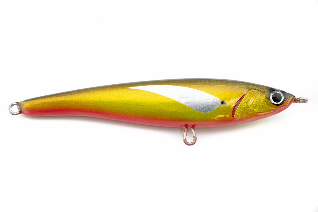 Pelagus165-S is a sinking stick-bait specifically designed Tuna fishing. Its particular action makes it excellent for frenzy fishing both in the presence of apathetic Tunas hunting small herds of forage. During sinking phase, the “wobbling” action is able to take the attention of tuna from considerable distance. Thanks to its versatility, Pelagus lends itself to multiple retrieve actions and its aerodynamics ensures great casting performance.