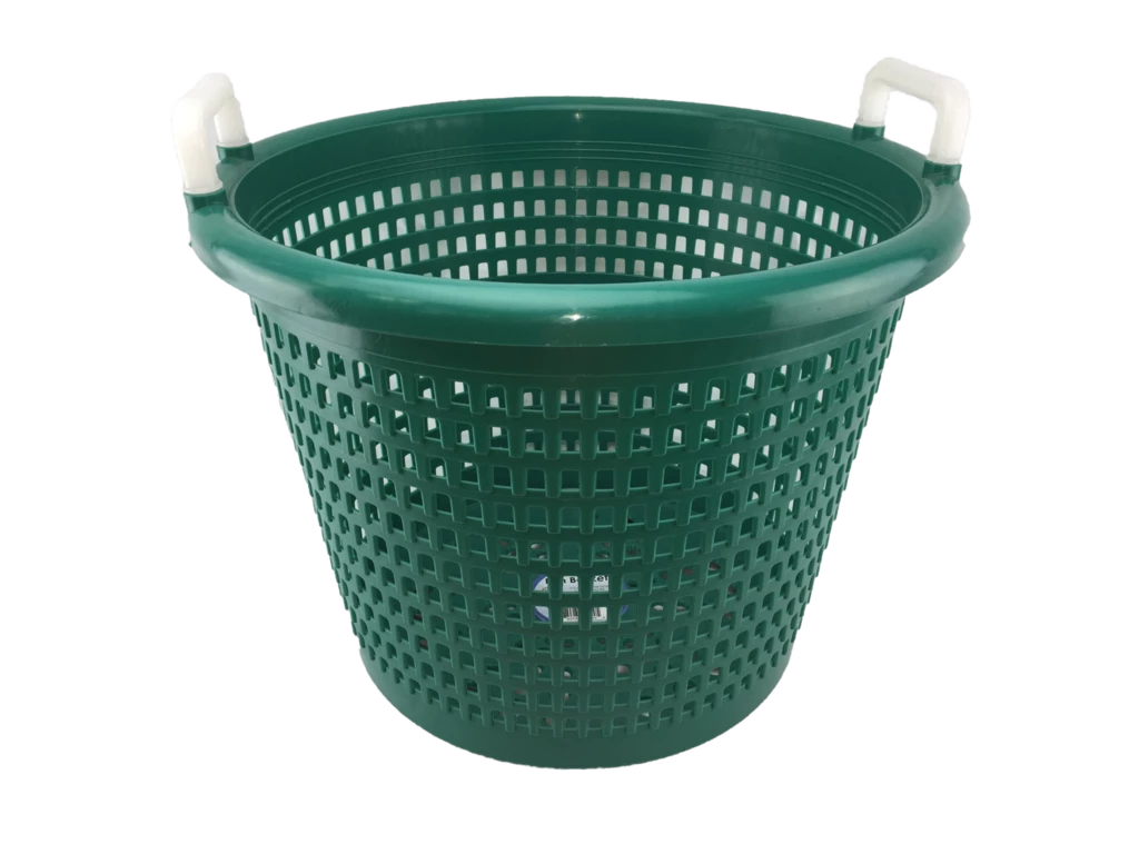 These fish baskets (aka. Shrimp baskets) are constructed from heavy duty plastic. They are meant for commercial fishing purposes, and they also make excellent baskets to keep harpoon line and a poly ball for big game fishing. These baskets are useful for storing and transporting fish, shrimp, scallops, clams, crabs, and just about anything else that you could think of!