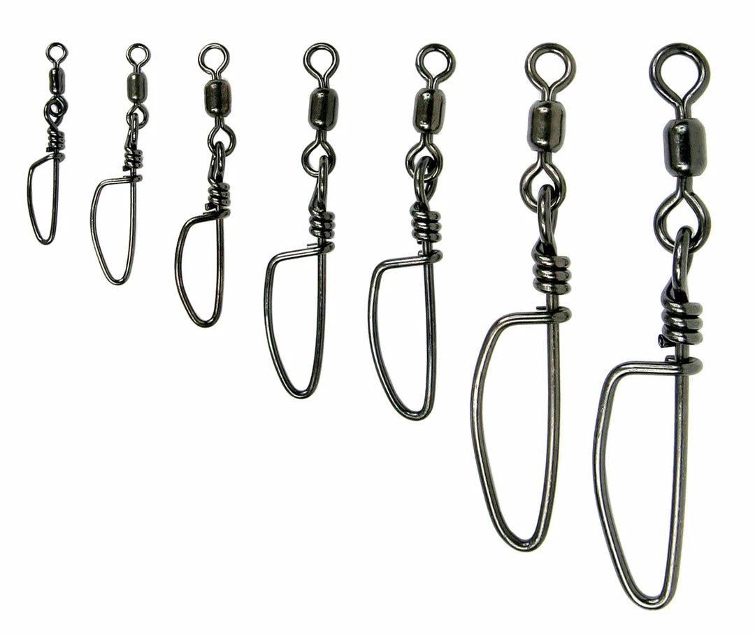 100% stainless steel construction, with a nickel black finish. These swivels provided super strong breaking strength in a compact size.