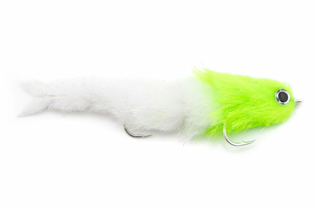 Tied by Mike “LI Flies” Ozkaya, right here on Long Island, NY. The “Gamechanger” was invented by renowned fly tyer and guide, Blane Chocklett. These flies feature a body tied on a series of shanks, with a second hook as well to give the fly a massive amount of articulation and wiggle in the water. Originally, these flies were intended for musky and pike fishing. But, now it has been adapted for saltwater. This fly is great for any fish that eats larger profile baitfish, it has a wide profile, and it moves a lot of water. Stripers are sure to love these, especially when fished at night if you’re looking for big fish. Tied with two Gamakatsu SL12S big game hooks.