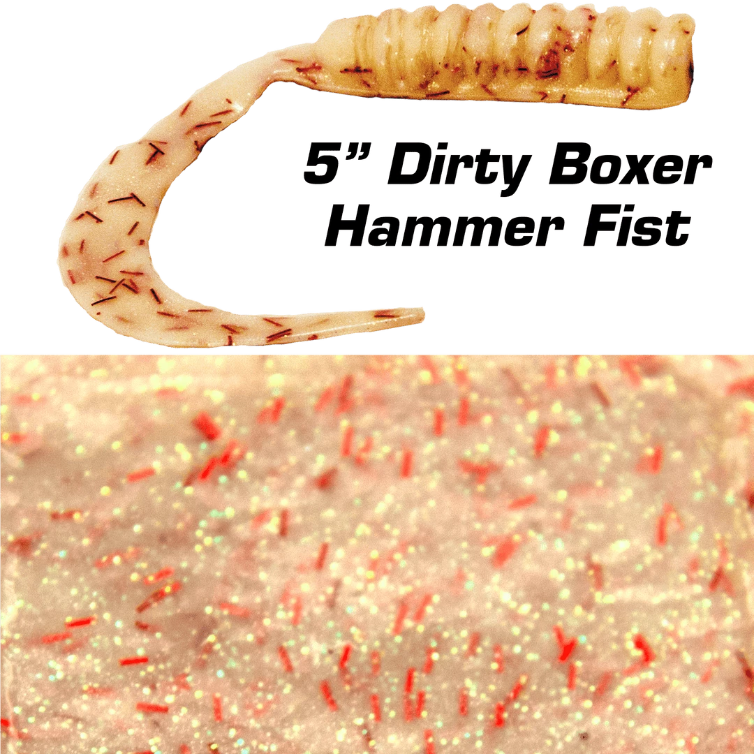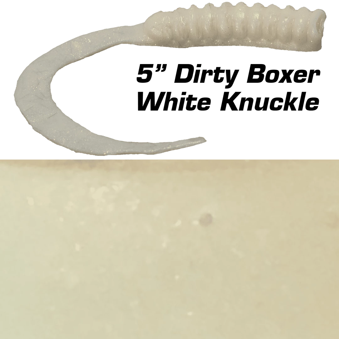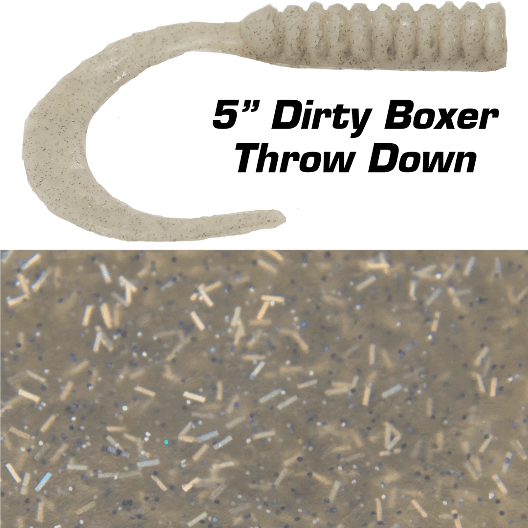 - The 5” Dirty Boxer is the curly tail grub you’ve been waiting for. It’s very durable and never fights fair.