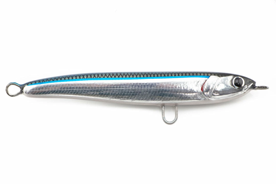 L.A.R.A (“Like A Real Anchovy”) is a sinking stickbait that imitates one of the most common fish preyed on by tuna: the anchovy. Therefore its shape and the tight and jerky action of this lure, extremely reproduce the aesthetics and the swimming of this bait-fish. The slim profile of this lure also imitates sandeels well.