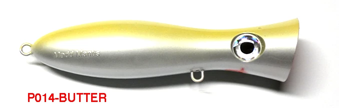 The Madd Mantis Cherry Poppa is like the classic Madd Mantis “Oh Poppa”, however it features a wider profile and larger cupped face. The wide, cupped face throws a lot of water when popped, and makes a lot of fish attracting commotion. Even more-so than the original design. These poppers dig in very well, and don’t have the tendency to roll out like many others do. This size is a great inshore/big game crossover. The focus in making the Cherry Popper was to make a super durable popper that throws far, does not tumble when worked in rough seas, is not too heavy to throw all day, and doesn’t break the bank. What we ended up with was a floating popper with a reputation to catch the biggest of fish when all other baits fail to produce. It is an excellent popper for GT and Tuna Fishing, but the smaller sizes also works for roosterfish, striped bass, bluefish, jacks, and many other species.