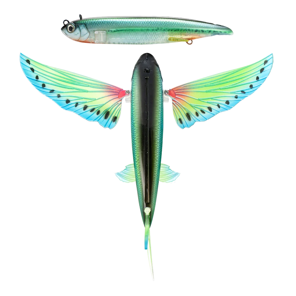 The unique folding wing design allows the wings to fold back when cast for extra distance or when fighting big Tuna and Marlin for reduced drag through the water. The wings, tail fin and side fins can all be changed or replaced with Nomad Design Wing Sets to create your own ultimate flying fish colour scheme.