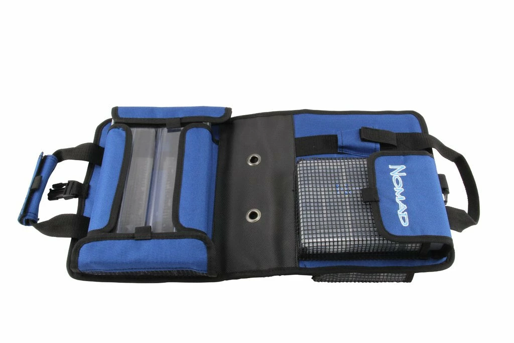 Jigs, leader material, assist hooks and a few pieces of terminal tackle are all you require for a phenomenal days fishing? You need the Nomad Jig Bag. Â With four compartments for jigs up to 11-inches long, three 5″ x 12″ mesh storage pockets and two included utility boxes, everything you need is in one very convenient fold out bag. Â Snap it closed with the durable oversized buckle and the seam reinforced 600-denier rip-stop polyester protects all contents in the harshest conditions. Â