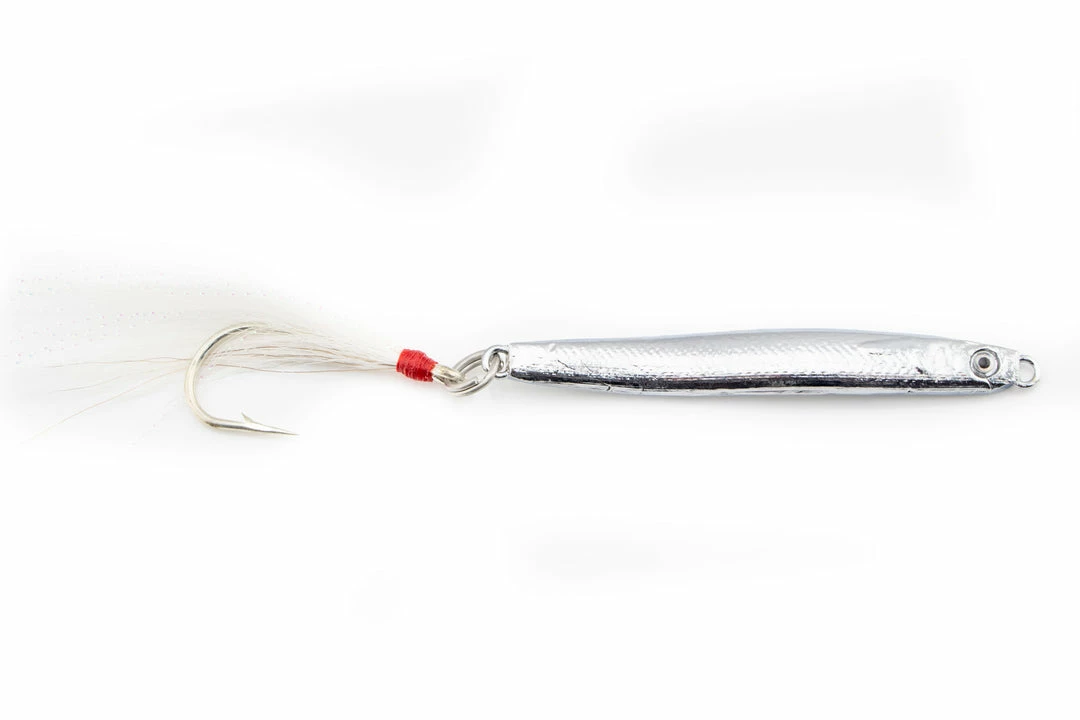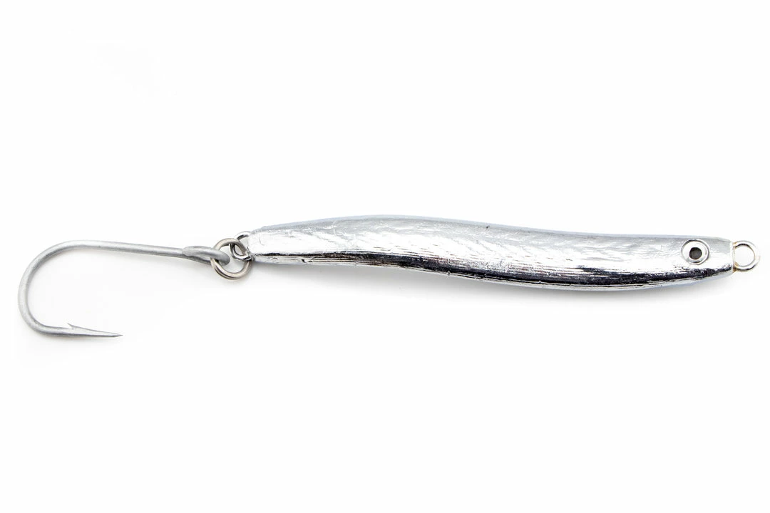 Proudly made in the USA by Run Off Lures. These tins were a hot ticket for many that were fishing sand eel bites over the last few years. The bend in these lures gives them an inherent swimming action that a lot of others don’t have, and the profile almost perfectly mimics that of a sand eel. This is a lure that works great for from both surf and boat, for a variety of species. You can use it in basically any situation that you would use a diamond jig. Striped bass and bluefish love these lures, but they also work great for jigging sea bass. The 1.5 oz. size specifically is a great lure for albies. Upgrade the hook and split ring, and you have a great jig for tuna that are keyed in on sand eels.