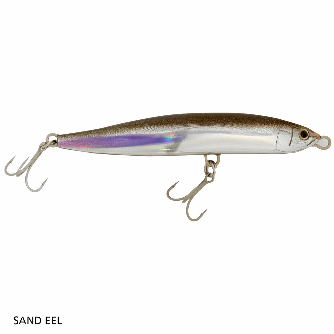 Formerly known as the Coltsniper. Featuring a sand eel-like slim shape design, Shimano’s Current Sniper sinking stickbaits offer exceptional casting distance from Shimano’s unique Propulsion Weight Transfer System. By allowing the internal weight to slide back during the cast, and then spring forward when the lure hits the water, anglers will notice casting distance increasing by up to 22-percent over similar weight and length lures. Ideal for chasing a variety of species from calico bass and stripers, the slow-sinking Current Sniper stickbaits have a wide slide swim action when retrieved. They feature chemical finish treble hooks mid-body and tail.