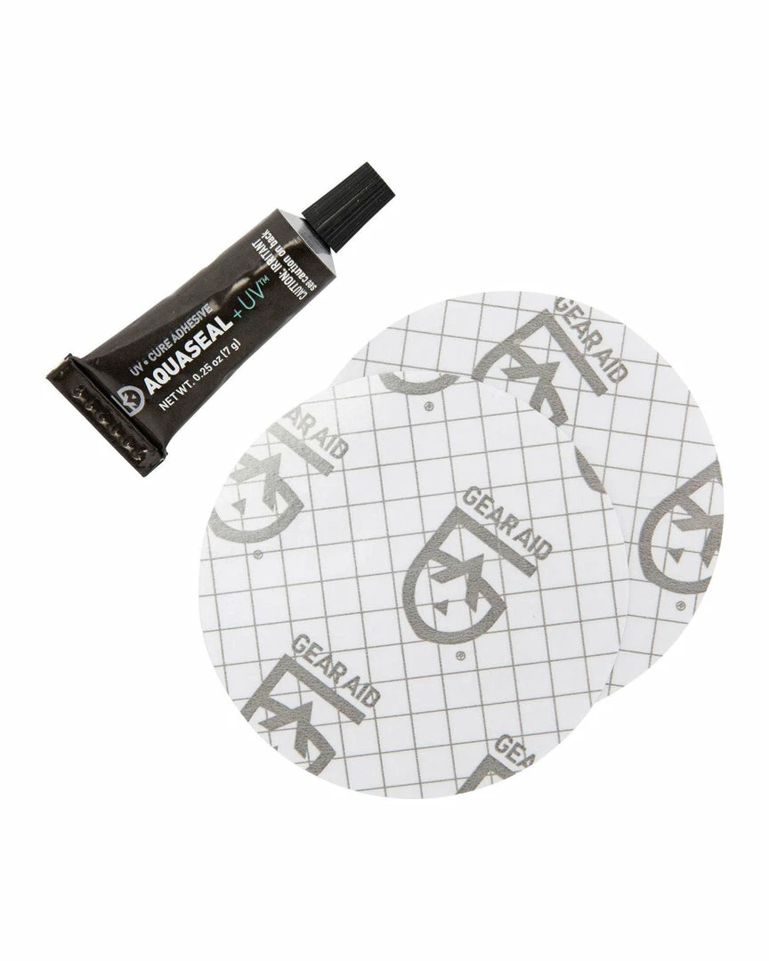 - Kit includes: 2 patches (3″ diameter) and 0.25 oz tube of AQUASEAL® UV