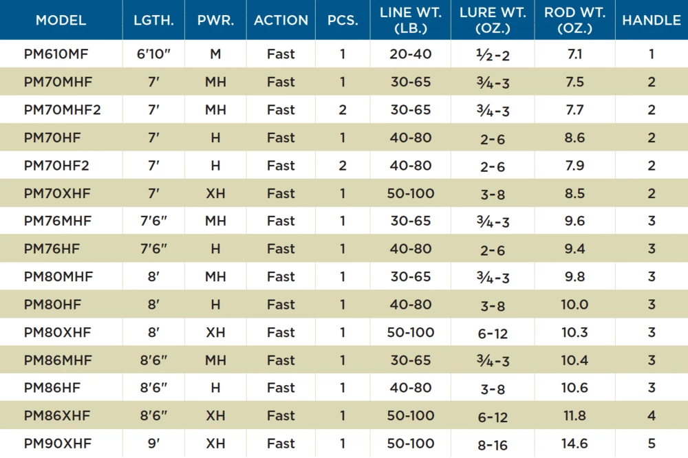 The classic styling, combined with performance and value is what has made Premier a perennial powerhouse. Featuring over 30 casting models, this series is ideally suited for powerful game fish. Not only are these great Musky rods, but they are also excellent for inshore salwater applications like striped bass, bluefish, fluke (summer flounder), blackfish, and more.Â