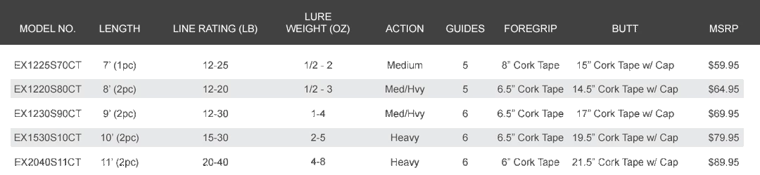 Aerial’s jetty/surf spinning rod is constructed with a durable E-glass blank and fitted with premium aluminum oxide guides, comfortable EVA grips, and a reel seat with cushioned, stainless steel hoods.