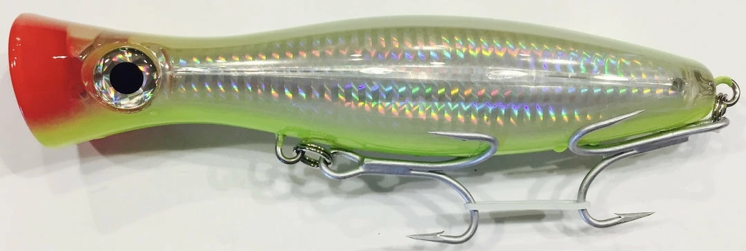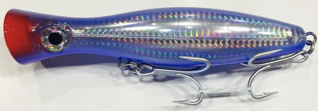 Strong reliable 3x treble hooks. 6.5 inch in body length equaling 3 ounce/88 gram weight allows for casting distance without intimidating fish. Striker Tackle tuna poppers have been designed by fishermen for fishermen. Using the highest quality materials we have developed poppers that will catch fish consistently and width stand the harsh environment of offshore big game fishing.
