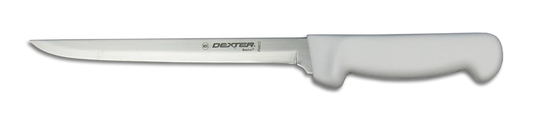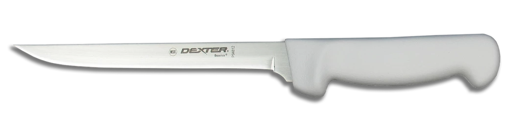 Are you looking for a quality knife for commercial or home use, but on a budget? If so, look no further. The Dexter Basics product line offers performance and value at an affordable price. The Basics blades are made of stain-free, high-carbon steel with a superior blade shape, as well as superior edge retention. These handles are available in either black or white, constructed with a nonslip polypropylene handle for your safety. Each knife is made with a hollow point edge allowing for easy maintenance and rapid re-sharpening. Cutting on a budget will never feel so good, with the Dexter Basics product line. NSF Certified.