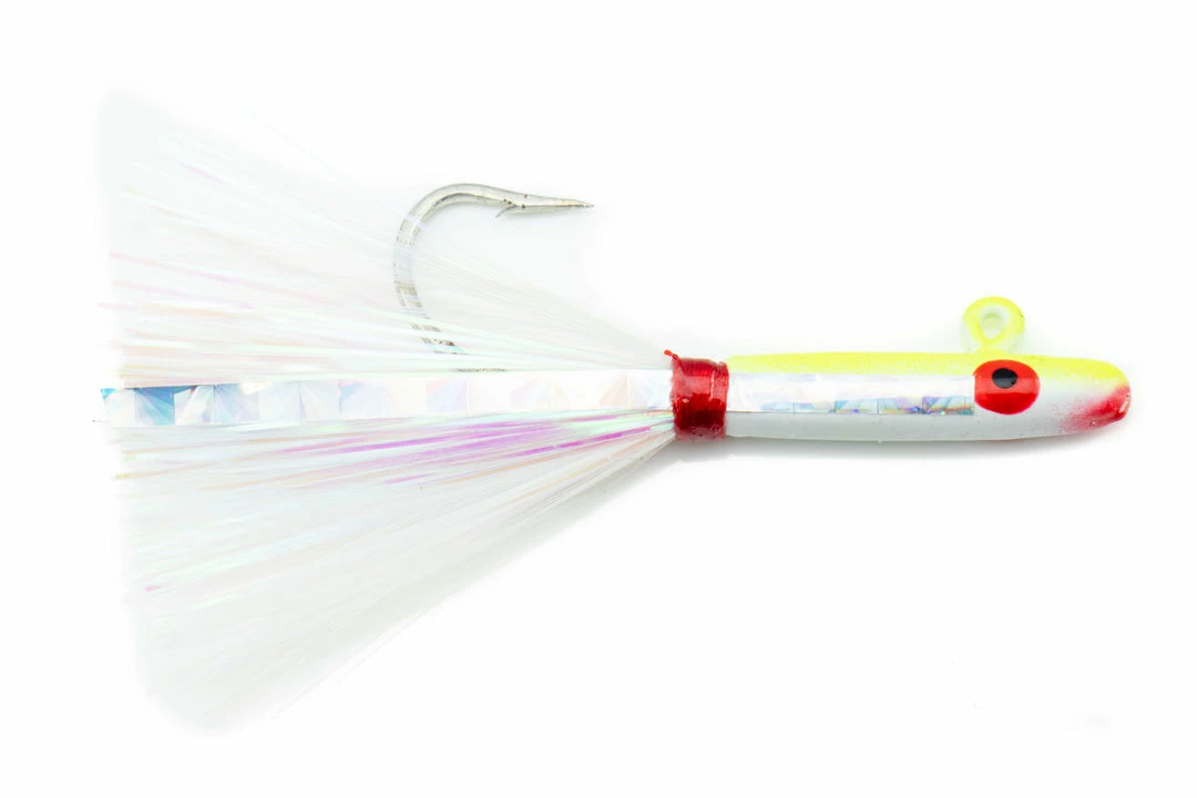 Tsunami Glass Minnows are an excellent jig for light tackle fluke fishing, and many other species that eat small baitfish. When jigging for fluke, we often fish these as a teaser on a dropper loop above a jig. Tip it with a piece of spearing, squid, or Berkley Gulp, and it is a deadly fish catching combination!