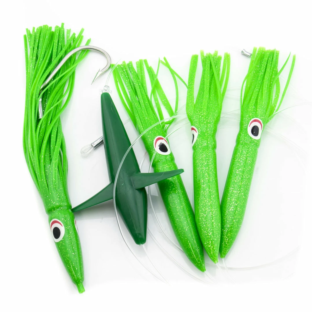- 3 6″ Shell Squid “teaser” baits.