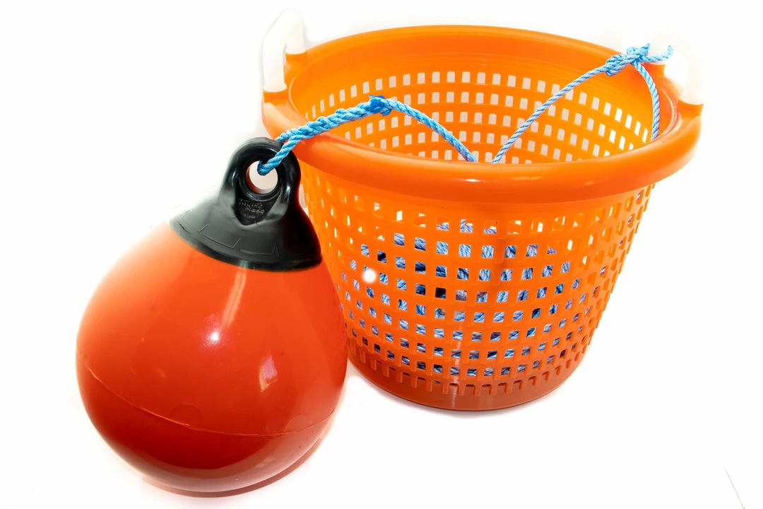 - 9″ Diameter Heavy Duty Poly Ball Buoy spliced at the end